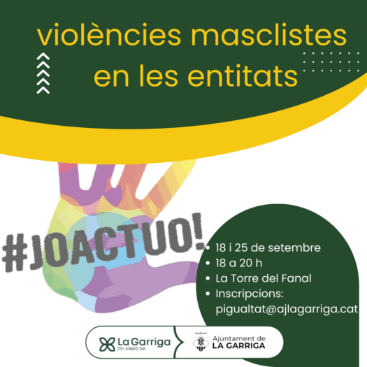 SERVEI Formació per a entitats sobre l’eina del protocol d’abordatge de les violències masclistes (edició 2024 i edició 2025)   CLIENT Ajuntament de La Garriga   BREU DESCRIPCIÓ DEL SERVEI Formació per a les entitats del municipi de sensibilització sobre les violències masclistes i LGTBI-fòbiques i capacitació per a l’elaboració de protocols propis d’abordatge.  …